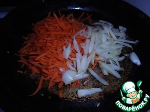 Лук с морковью спассеровать на оставшемся сливочном масле. Помидор вымыть и мелко нарезать.