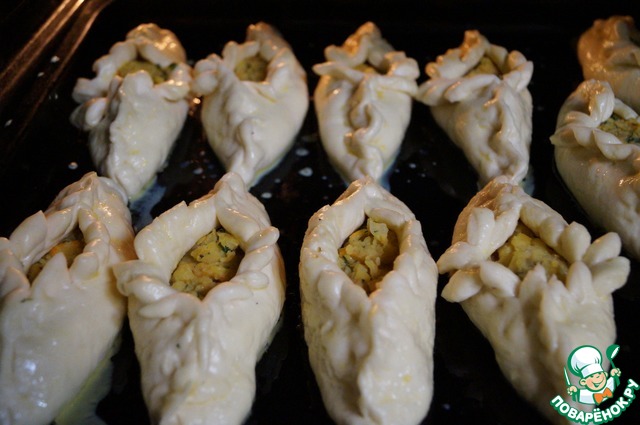 Рецепт «Расстегаи с горохом и чесночным маслом»: