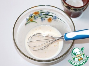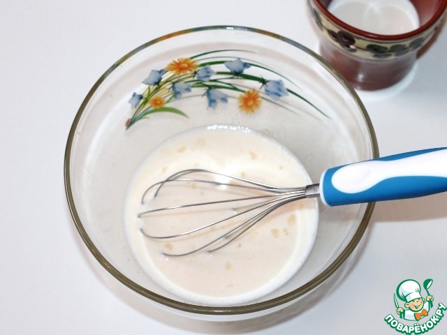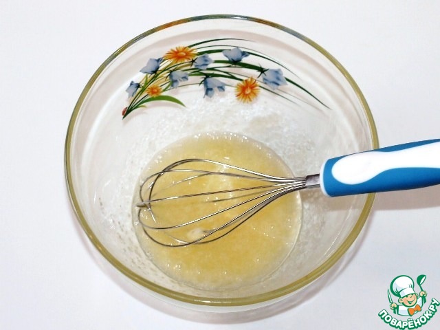 1. Приготовим тесто. Куриное яйцо смешиваем с сахаром и солью, взбиваем венчиком.