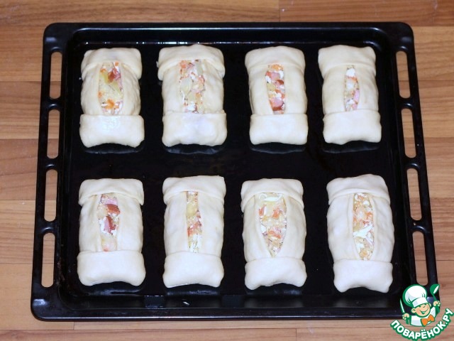 Рецепт «Кулебяки с сыром, овощами и сосисками»: