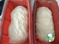 Делю тесто на приблизительно равные 2 части, каждую из них выкладываю в силиконовую форму-кирпичик, ничем не смазанную и ставлю в снова нагретую до минимума духовку на 30 минут. |