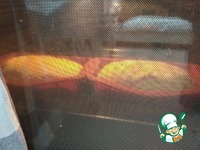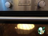 По истечении указанного времени тесто выглядит так. Достаю из духовки, а её (духовку) снова включаю на нагрев до минимума. |