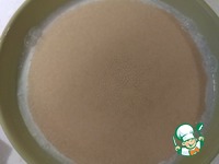 Наливаю кефир (из холодильника) в суповую чашку, туда же кипяток - пробую пальцем - горячо быть не должно. В тёплую смесь добавляю соль и дрожжи, размешиваю и перехожу к муке. |