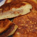 На паштет выложить небольшое количество теста, чтоб прикрыть его. Обжариваем с двух сторон на умеренном огне. Подаем горячими или холодными. Приятного аппетита!