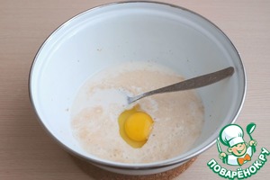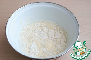 Добавить 75 гр. пшеничной муки. Смесь взбить до однородного состояния.