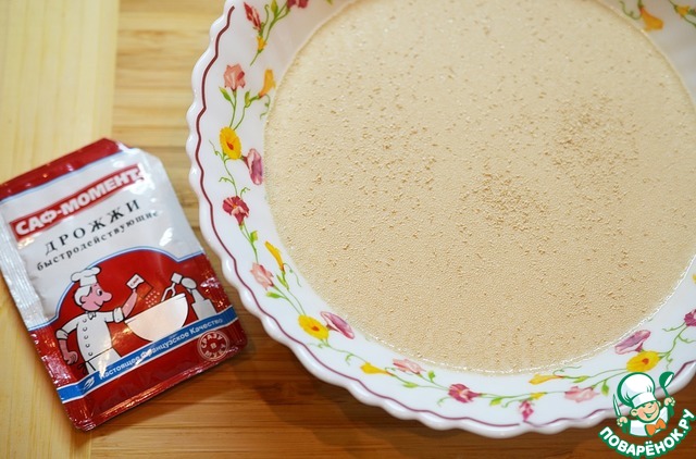 Молоко подогрейте, добавьте сахар и дрожжи. Оставьте минут на 20. Я использую сухие быстродействующие дрожжи САФ-МОМЕНТ.