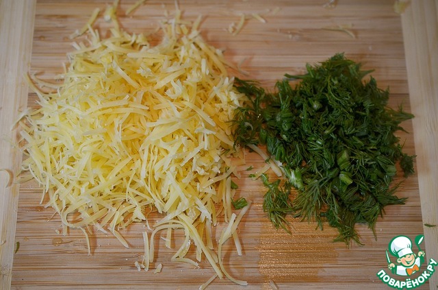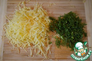 Сыр натрите на мелкой терке, зелень нарежьте.