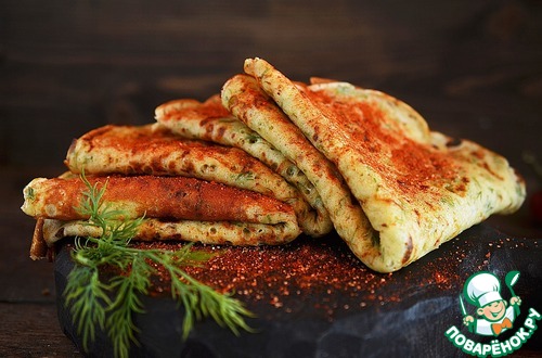 Рецепт «Сырные блины с зеленью и паприкой»: