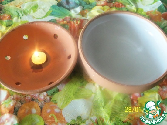 Сервировать в специальной глиняной тарелке с подогревом.