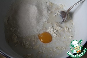 Добавить оставшиеся компоненты: желток, соль, муку, если требует тесто, чтобы было средней консистенции. Не "забивать" тесто!