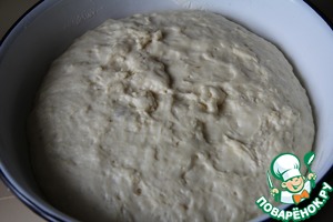 Миску с тестом накрыть тканью и оставить в тепле для подъема.