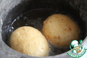 В глубокой форме нагреть растительное масло и жарить пончики до румяного состояния.
