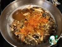 Добавляем к гороху грибы, тушеные лук с морковью и соевый соус. Доводим до кипения и готовим около 30 минут.
