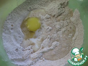 Добавить яйцо и половину молока (его лучше подливать постепенно, доводя тесто до нужной консистенции), - в зависимости от свойств вашей муки, молока может понадобиться меньше или больше