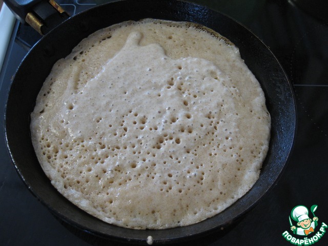 Для этих блинов я взяла цельнозерновую муку, если у вас такой нет, то возьмите пшеничную и ржаную в равных пропорциях.