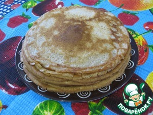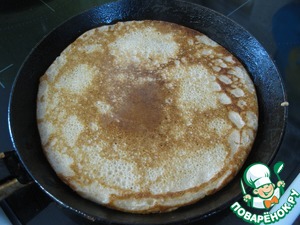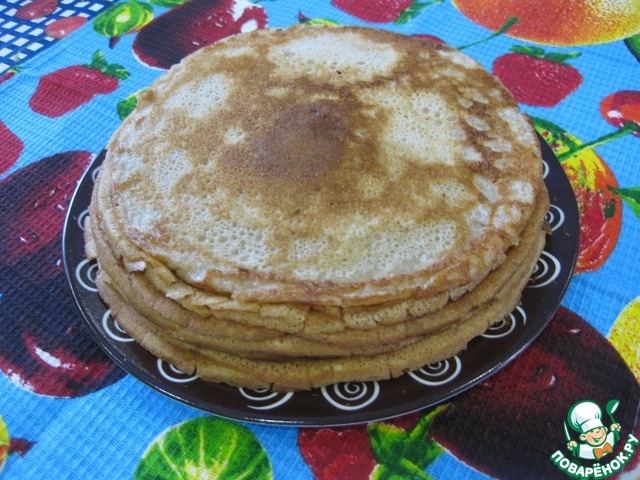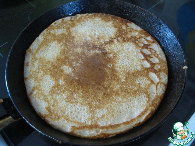 Из этого количества теста выходит примерно 10 блинчиков диаметром 16-17 см (не большие).