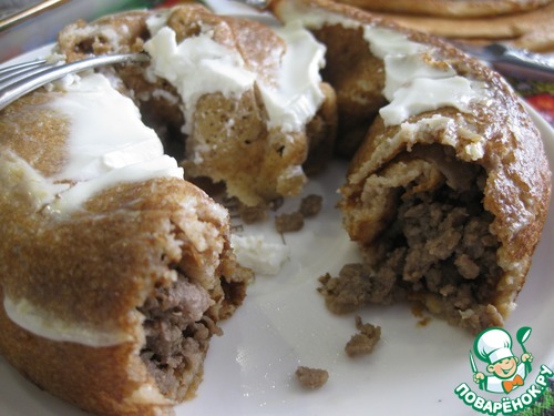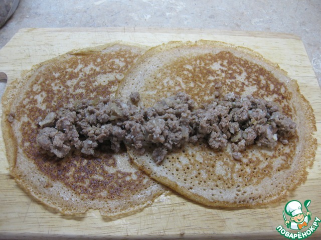 Кориандровые блины, запеченные с фаршем