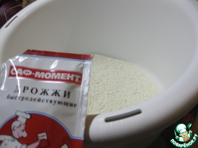 - Дрожжи (быстродействующие от ТМ Саф-момент) — 1/3 ч. л.