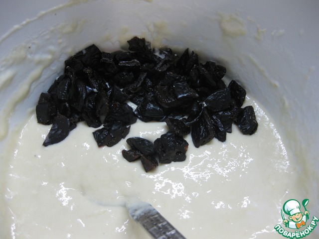 Размешать тесто и добавить нарезанный кубиком чернослив (я его сразу не перемешивала с тестом),