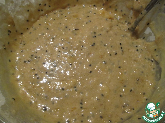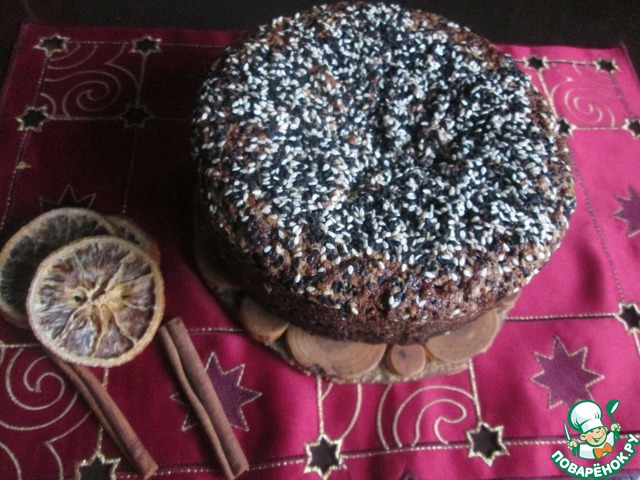 Тесто перелить в форму, посыпать оставшимся кунжутом. Выпекать 60-70 минут.