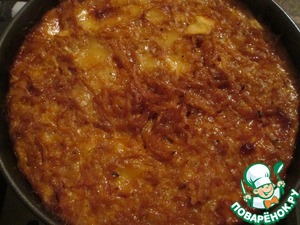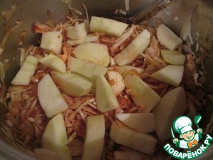 Добавить паприку, посолить, поперчить, положить сверху яблоки и тушить под крышкой на медленном огне 20 минут.