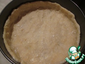 Тесто выложить в форму диаметром 20 см и распределить руками, образуя бортики высотой примерно 3-4 см. -