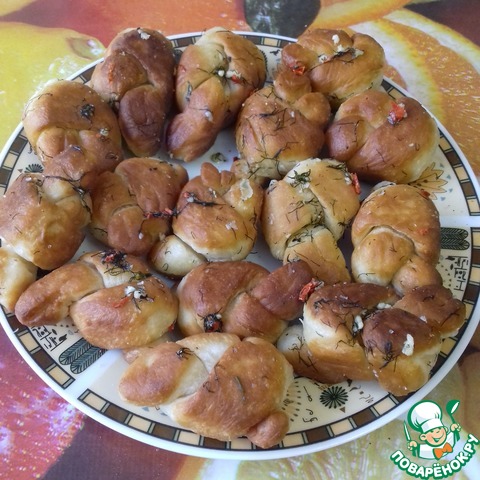 Горячие узелки поместите в кастрюлю, полейте ароматным маслом, дайте немного пропитаться и подавайте.