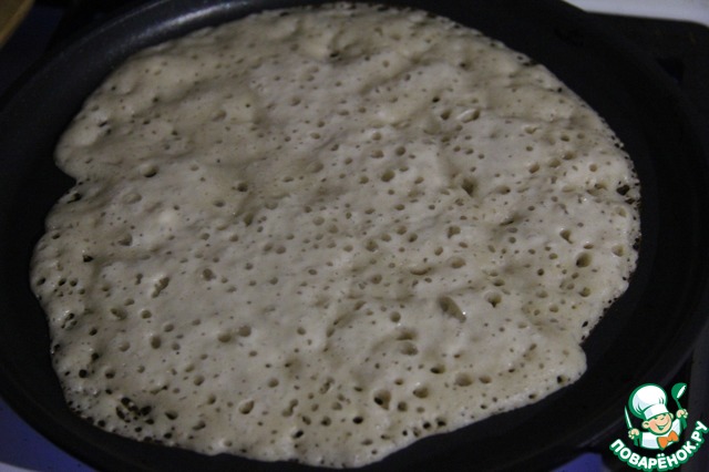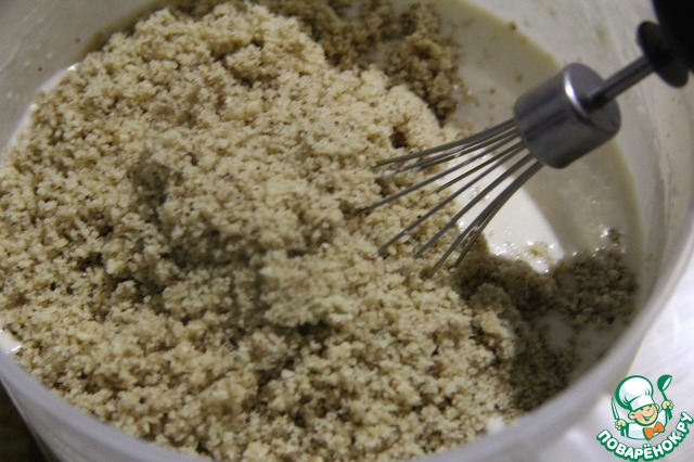 В теплой смеси воды и молока развести 1 ч. л сахара и всю порцию дрожжей. Добавить гречневую муку. Накрыть полотенцем и оставить в теплом месте до подъема опары.