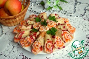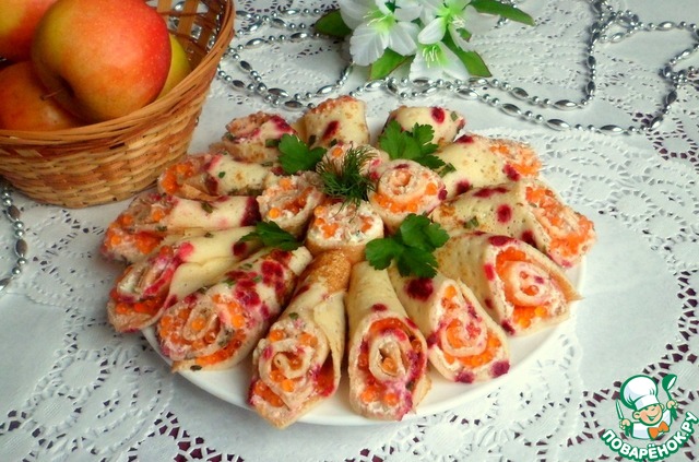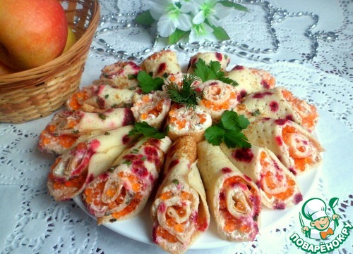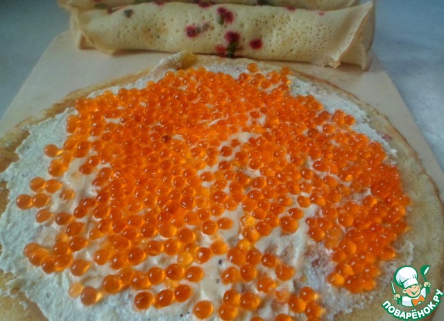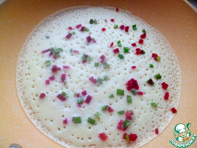 Рецепт «Изумрудно-рубиновые блины с начинкой»:
