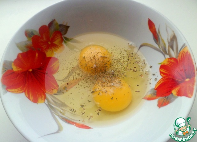 Для начинки: взбить яйца с солью, молотым черным перцем и прованскими травами.