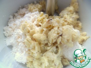 Творог соединить с яичной кашкой, пробить в блендере. Творог брать сухой, чтоб масса в итоге, получилась не жидкой.