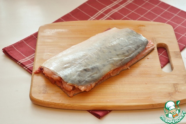 Для кулебяки выберите центральную часть филе (две половинки с кожей).
