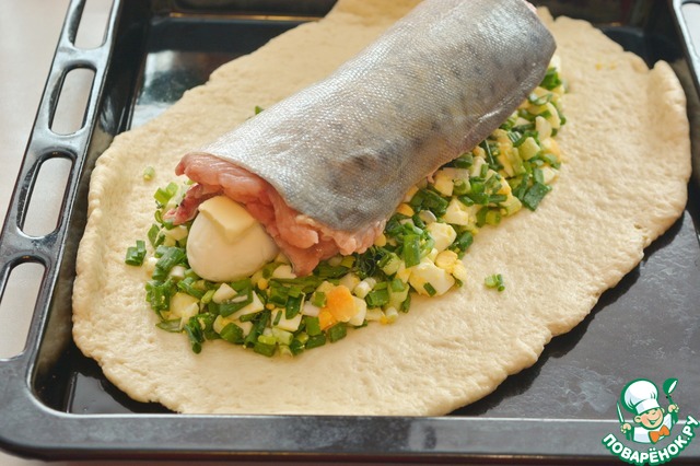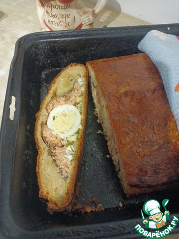 Рецепт «Кулебяка с горбушей, луком и яйцом»: