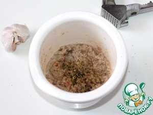 8. Перекладываем мясную смесь в чашу блендера. Добавляем приправу для мяса (0,5 ч. л.), соль и молотый перец по вкусу.