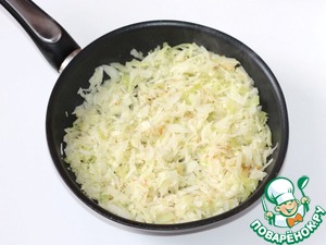 9. Мелко рубим капусту и обжариваем на масле (2 ст. л. растительное +1 ст. л. сливочное) до полуготовности.