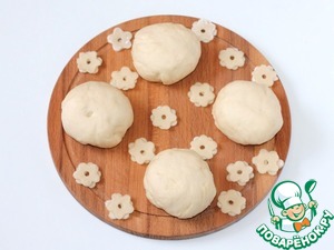11. Подошедшее тесто обминаем, делим на 8 частей и скатываем в шарики. Накрываем тесто пленкой и даем минут 15 отдохнуть, подойти.