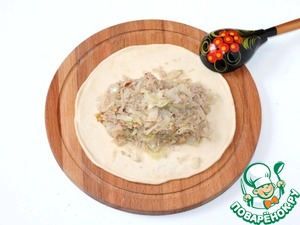 12. Берем по одному шарику, расплющиваем или раскатываем в лепешку и кладем начинку.