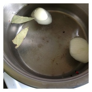 В кастрюлю наливаем воду. Добавляем лавровый лист, соль, перец горошком и пол луковицы. Когда вода закипит, выкладываем пельмени и варим до готовности. Готовые пельмени можно подавать с маслом, сметаной, зеленью, а можно и с бульоном.