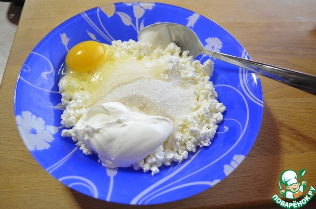 - Желток яичный (для обмазывания ватрушки.) — 1 шт
