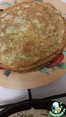 - Масло подсолнечное (1,5 ст л в тесто, 1,5 ст л на подмазку сковороды) — 3 ст. л.
