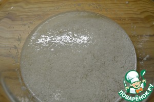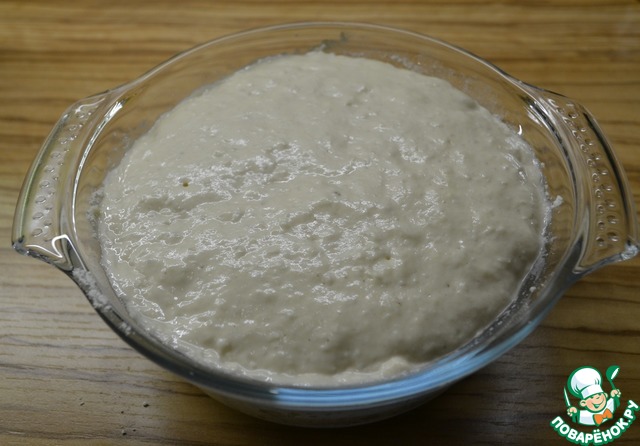 • Добавить муку, размешать. Накрыть и оставить в теплое место на час.