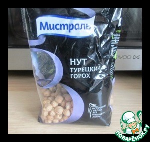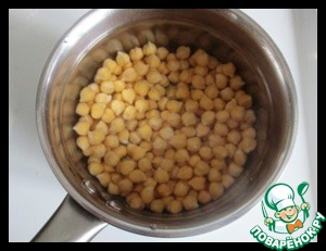 Нут тверже обычного гороха, поэтому его необходимо замачивать на 8-12 часов. На 1 меру гороха берем 4 меры холодной (!) воды. Т. к. мы варим суп-пюре, то в воду для замачивания добавляем соду (не перепутать с солью!), она способствует развариванию гороха. Оставляем горох на ночь.