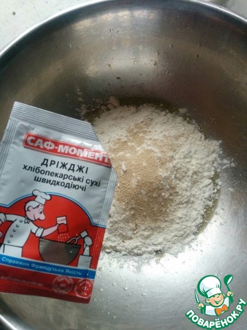 • Взвешиваем муку и высыпаем к ней дрожжи саф-момент.