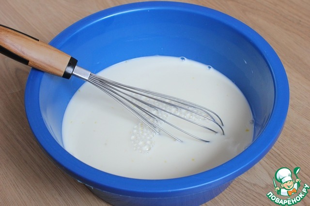 В глубокую миску вливаю молоко, добавляю сахар и соль, разбиваю яйцо. Взбиваю венчиком до однородного состояния.