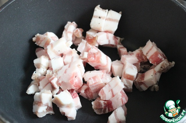 Сало режу кубиками, кладу в сотейник и ставлю на средний огонь.