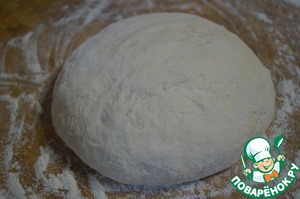 • Затем добавить соль и муку. Вымесить не крутое эластичное тесто. Оставить в теплом месте для подъема на час.
