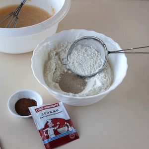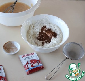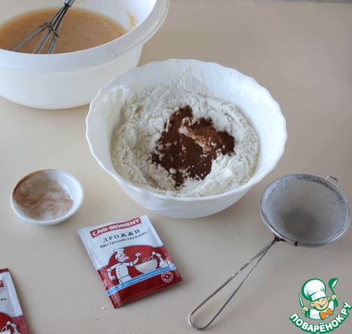 По рецепту к муке добавить 1 ст. л. без верха молотой корицы, всё перемешать. Количество корицы можно уменьшить по своему предпочтению.