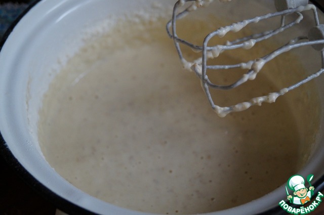Затем добавить еще 2 стакана муки и слегка взбить миксером для разбивания комочков. Оставить тесто на час в холодильнике.