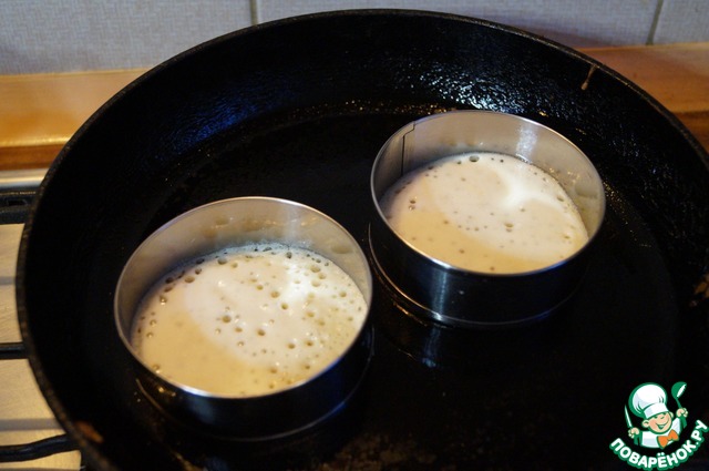 Я - для идеально круглой формы - делала это при помощи металлических колец. Но это совсем необязательно, можно просто наливать тесто на сковороду. -