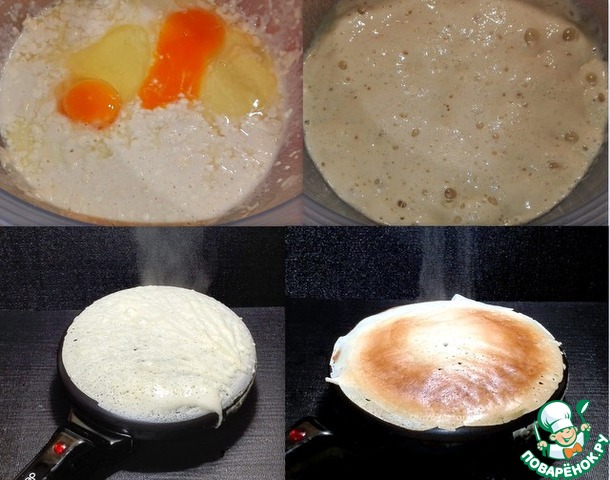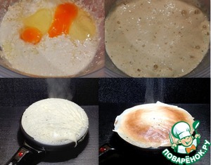 тесто готово для выпечки блинов. Выпекала